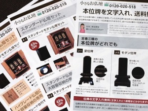 小さなお葬式の資料を請求してみました。 私の父親(83歳)が脳梗塞で倒れ、医者には今後意識の回復は難しいと言われ、真剣に葬儀のことを考えなくてはならなくなりました。 今まで父親は普通に元気だったため葬儀については漠然としかイメージしていませんでした。 しかし、このような状況となり、いざとなった場合の葬儀社を決めておく必要があり、資料を請求することにしました。 WEB上で入力するのは「名前・送付先」と「資料送付方法を選択・葬儀をお考えの地域の選択」。 たったこれだけです。 日曜日の夜にWEB請求し、木曜日には担当者の名前が入った挨拶文と一緒に資料が届きました。 WEB上ではわからないさらに詳しい、斎場などの具体的な内容の資料でした。 内容を確認中に「火葬中の待ち時間はどのように過ごすのか?」という疑問がわき、「待合室は別途有料」となっていたので早速電話で問い合わせてみました。 電話応対の方は男性でしたが、とてもゆっくりと話してくれて、年配の方にもわかりやすそうで好印象です。 待ち時間についてですが、最近は近くのファミレス等で過ごされる方が多いそうです。 待合室を使用する場合は椅子一脚いくらと計算するようです。また食事を取ることもできます。 金額は地域、斎場によって異なるようですので確認されるとよいと思います。 参考までに私の地域では椅子4~500円、食事一人3500円とのことでした。 |