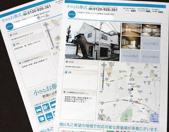 WEB上ではわからないさらに詳しい、斎場などの具体的な内容の資料でした。